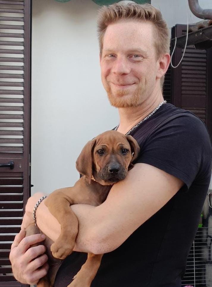 Wenn er dann noch typisch „Ridgeback“ ist, also elegant mit etwas Tollpatschigkeit, stur aber sensibel und mit dem tollen weizen- oder rotweizenfarbenen Fell und gesund durch bewusste und kontrollierte Zucht, dann sind wir verliebt!
